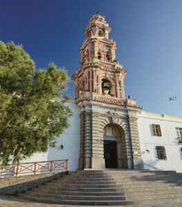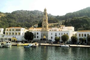 Then prepare to be captivated by the awe-inspiring Monastery of Archangel Michael (Panormitis), a true testament to enduring faith and architectural brilliance. For over five centuries, this magnificent structure has stood as an unwavering guardian, with its unique bell tower piercing the skyline. Inside, the dominating icon, a masterpiece of religious art, commands attention and admiration. This is an experience you will never forget.